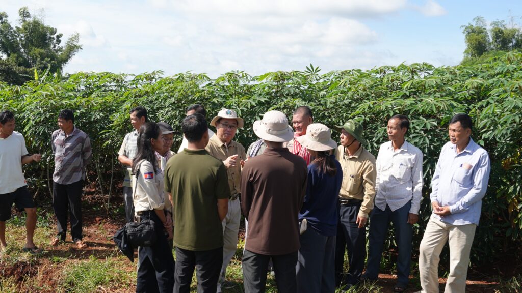 នៅថ្ងៃទី៧ ខែតុលា ឆ្នាំ២០២៥ ឯកឧត្តម តូច ប៊ុនហួរ រដ្ឋលេខាធិការក្រសួងកសិកម្ម រុក្ខាប្រមាញ់ និងនេសាទ អញ្ជើញដឹកនាំក្រុមការងារជំនាញ ជួបសំណេះសំណាលជាមួយប្រជាកសិករ ដាំដំណាំស្វាយចន្ទី និងដំណាំដំឡូងមី ស្ថិតនៅឃុំស្វាយទាប ស្រុកចំការលើ ខេត្តកំពង់ចាម។